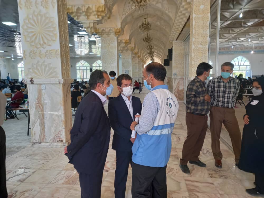 دکتر محمد جواد یزدانی مدیر شبکه بهداشت و درمان شهرستان و رئیس دانشکده پرستاری کاشمر به اتفاق دکتر مجتبی قائمی معاون بهداشتی و رئیس مرکز بهداشت شهرستان در اولین روز از برگزاری کنکور سراسری با حضور در حوزه برگزاری کنکور سراسری رشته هنر، در امامزاده سید حمزه (ع)کاشمر، از این حوزه بازدید نمودند.