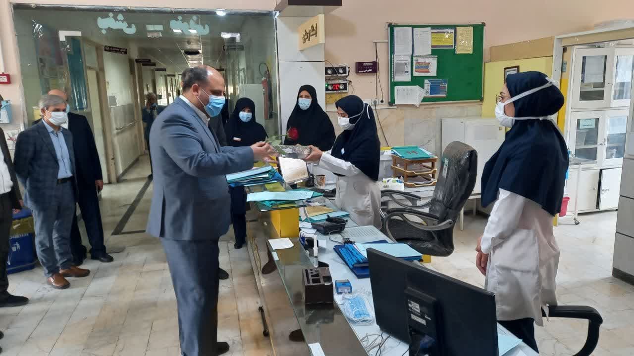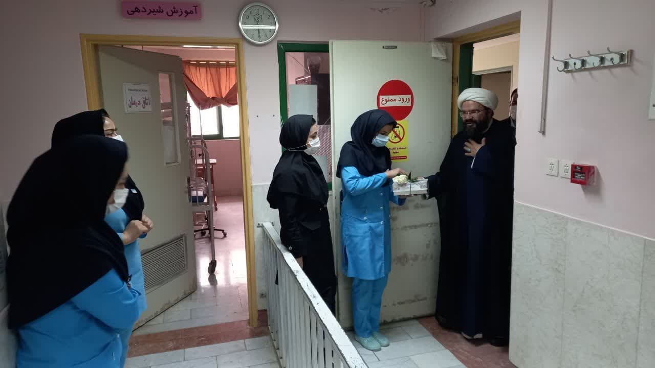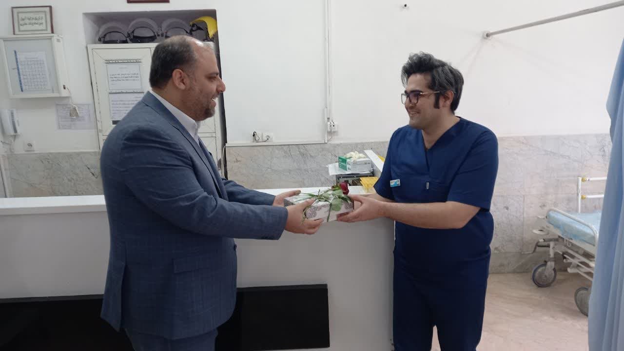 همزمان با روز میلاد با سعادت منجی عالم بشریت حضرت مهدی موعود(عج) فرماندار شهرستان به اتفاق نماینده شهرستان ، دکتر مکارم مدیر شبکه بهداشت ودرمان و دیگر مسئولین حوزه سلامت شهرستان کاشمر با حضور در بیمارستان های کاشمر ضمن بازدید از بیمارستان ها، با اهدای گل و شیرینی این عید فرخنده را به پرسنل تبریک گفتند.