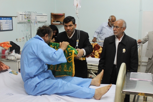 این مراسم معنوی که چند سالی است به همت آستان قدس رضوی به صورت مستمر برگزار می شود خادمین حرم مطهر امام مهربانی ها با لباس خادمی و با به همراه داشتن بسته های متبرک بر بالین بیماران حاضر شدند و با تبریک ایام فرخنده و مبارک دهه کرامت که با ولادت حضرت معصومه(س) آغاز و با میلاد شمش و الشموس آقا علی ابن موسی الرضا (ع) پایان می پذیرد، ضمن اهدای بسته های متبرک برای آنان آرزوی صحت و سلامتی کردند.