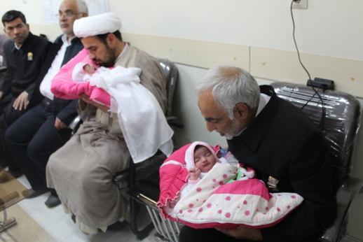 خیل گسترده مادران بستری در بیمارستان حضرت ابوالفضل(ع) شهرستان که فرزندان آنها تازه متولد شده بود ،با توجه به احترام ویژه ای که نسبت به خدام این امام همام قائل بودند، درخواست گفتن اذان واقامه درگوش نوزادان خود را از این خادمان نموده و ایشان نیز اجابت کردند.