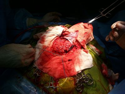 وی ادامه داد با توجه به اینکه مغز کاملا متورم بود، لذا پرده ها ی مغز بهم نمی رسید و به کمک پریوست روی جمجمه بیمار، دوراپلاستی(ترمیم و افزایش حجم پرده مغز) انجام شد.