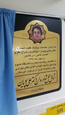 در مراسمی که با حضور با حضور رییس دانشگاه علوم پزشکی مشهد،معاون درمان، مدیر عامل مجمع خیرین سلامت استان خراسان رضوی و مسئولین حوزه سلامت شهرستان کاشمربرگزار شد، اتاق عمل بیمارستان حضرت ابوالفضل (ع) کاشمر به نام شادروان دکترعلی پویان نام گذاری گردید.